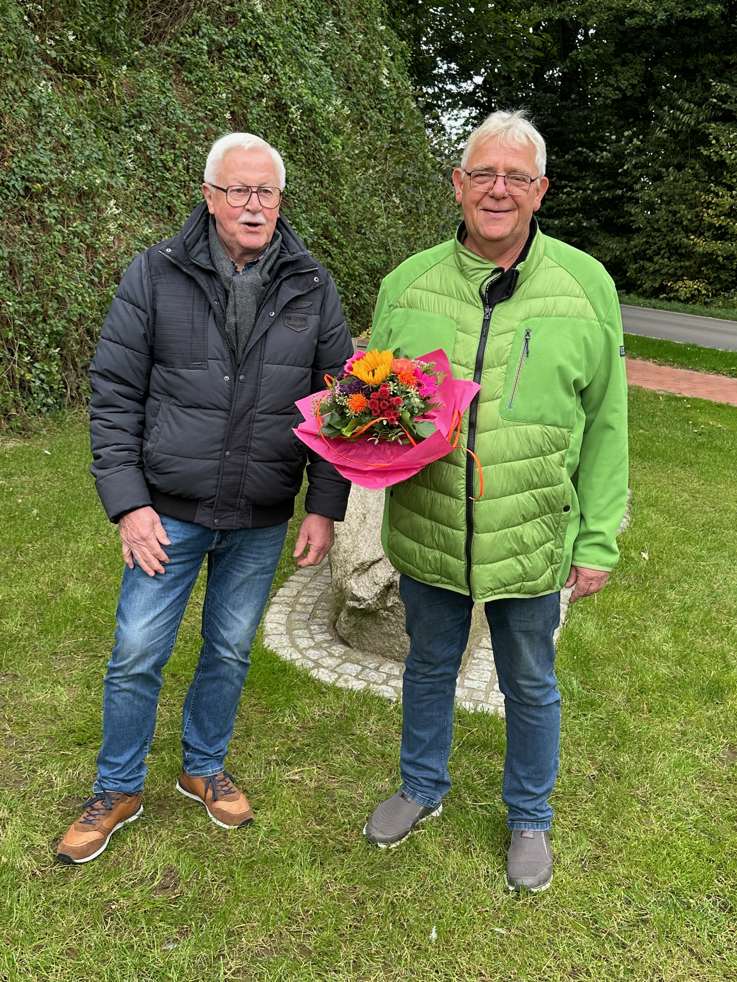 Aus diesem Anlass überreichte Reinhold Bothe (1. Vorsitzender der Dorfgemeinschaft Spreda-Deindrup e.V.) einen Gutschein an den Jubilar. Dieser verriet spontan, dass er Nicole bei der Einlösung des Präsentes mitnehmen werde.