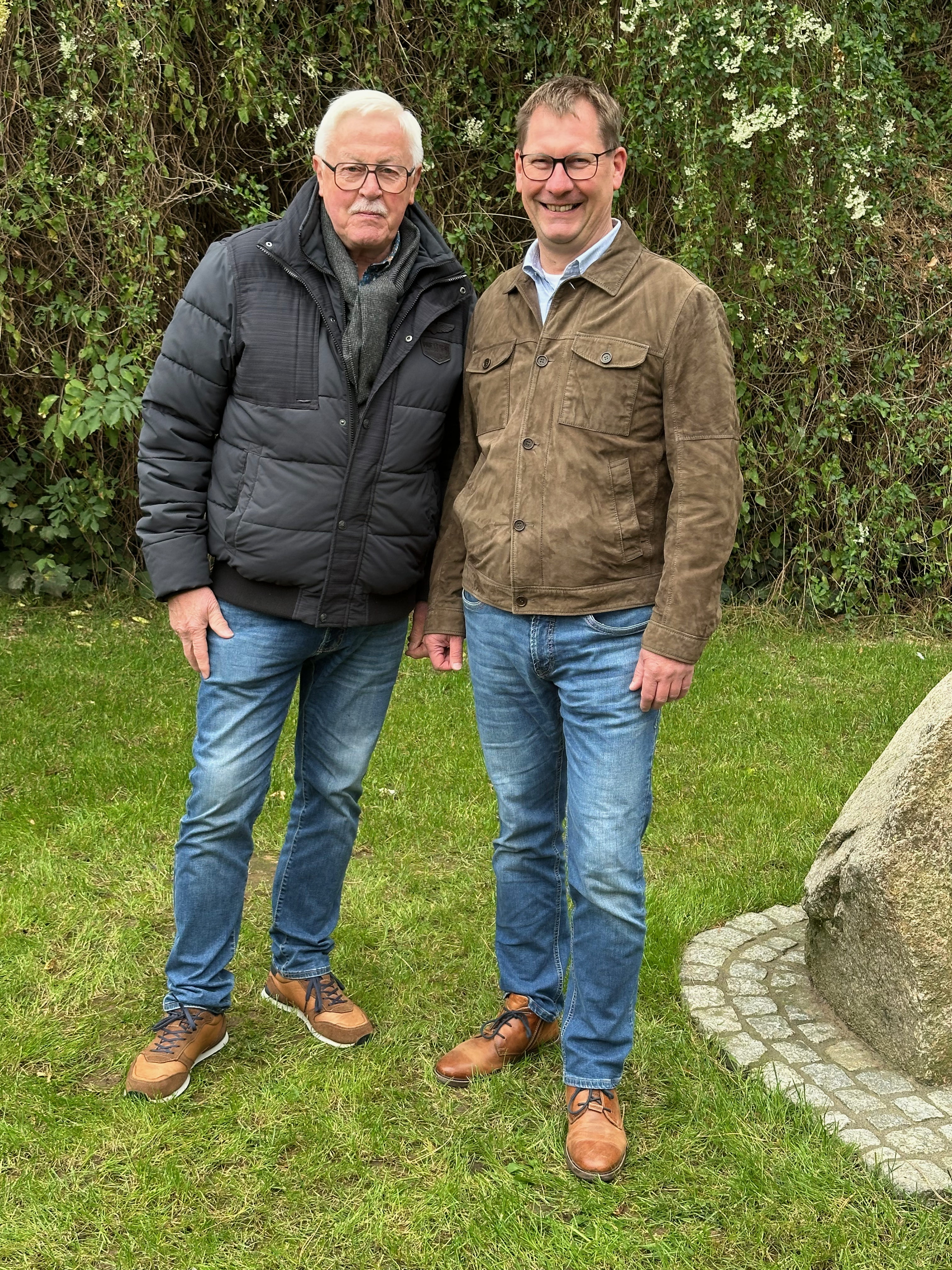 Rund 80 Gäste nahmen am Samstagvormittag an der feierlichen Einweihung des neuen Gedenksteins an der Ecke „Am Osterfeld“ in Deindrup teil – ein beeindruckender Zuspruch, mit dem im Vorfeld kaum jemand gerechnet hatte. Bei freundlichem Herbstwetter eröffnete der 1. Vorsitzende Reinhold Bothe die Veranstaltung pünktlich um 11 Uhr und begrüßte die zahlreichen Besucherinnen und Besucher. Unter ihnen befanden sich auch der stellvertretende Ortsbürgermeister Rolf Wichmann sowie die Familie Gerken aus Strohe, die den mächtigen Stein gestiftet hatte.